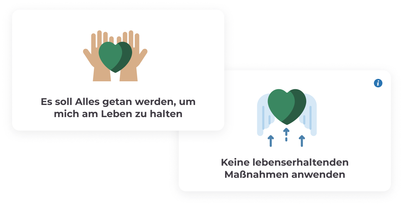 Wir leiten Sie durch einen einfach verständlichen Fragenkatalog. Dieser dient als Formulierungshilfe für Ihr individuelles und rechtskonformes Vorsorgedokument.